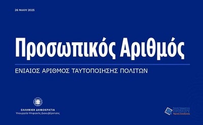 Ο Προσωπικός Αριθμός αποδίδεται πλέον σε όλους τους ενήλικες πολίτες, με στόχο την απλούστευση των συναλλαγών με το Δημόσιο, υπογράμμισε μεταξύ άλλων ο Γενικός Γραμματέας Ψηφιακής Διακυβέρνησης, Δημοσθένης Αναγνωστόπουλος.